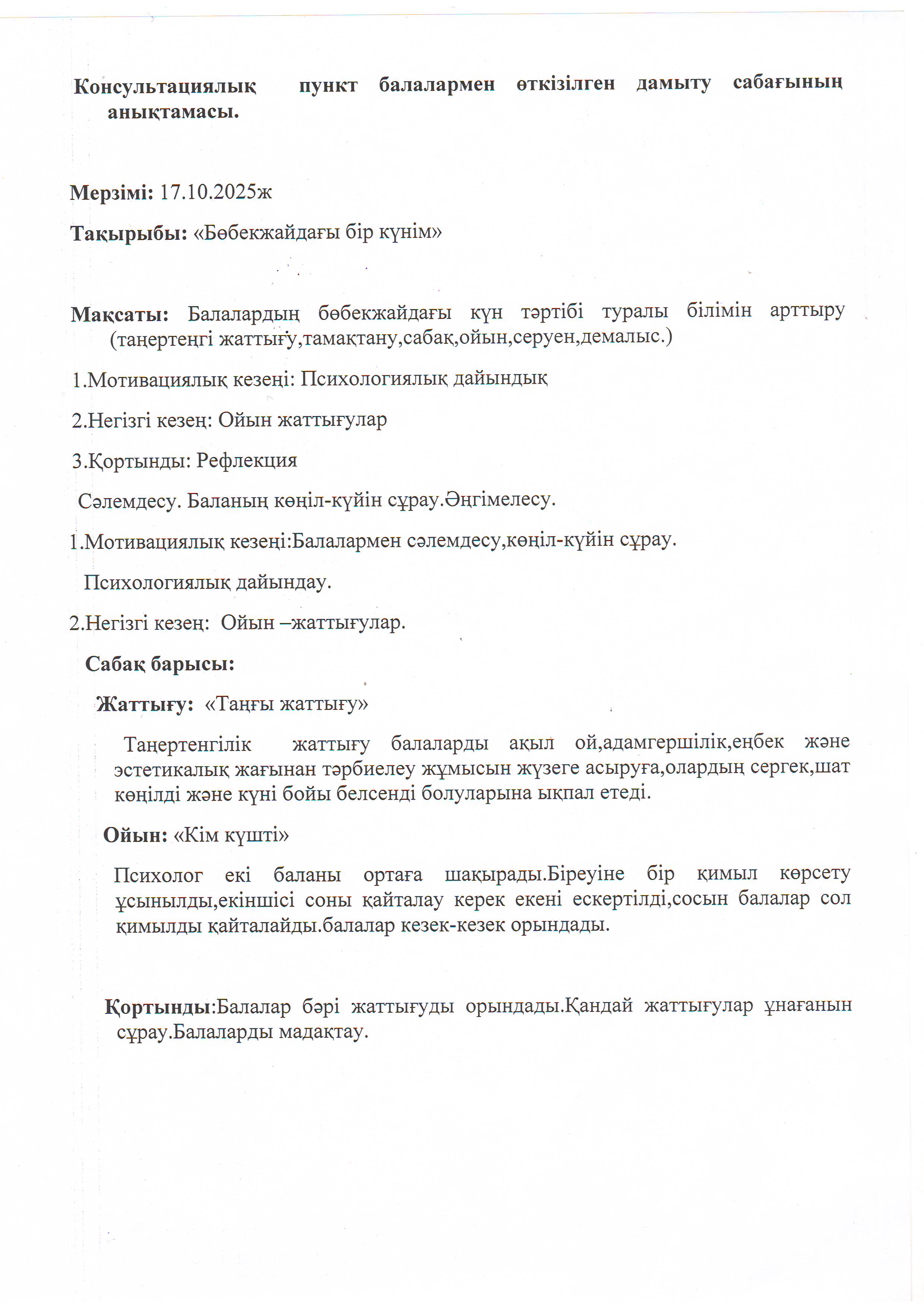 Костультативтік пункт "Бөбекжайдағы бір күнім"