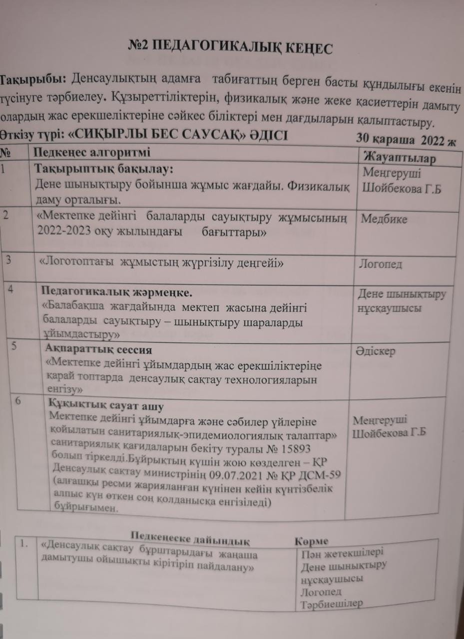 №2 Педагогикалық кеңес » №43 "Еркеназ" бөбекжай-бақшасы