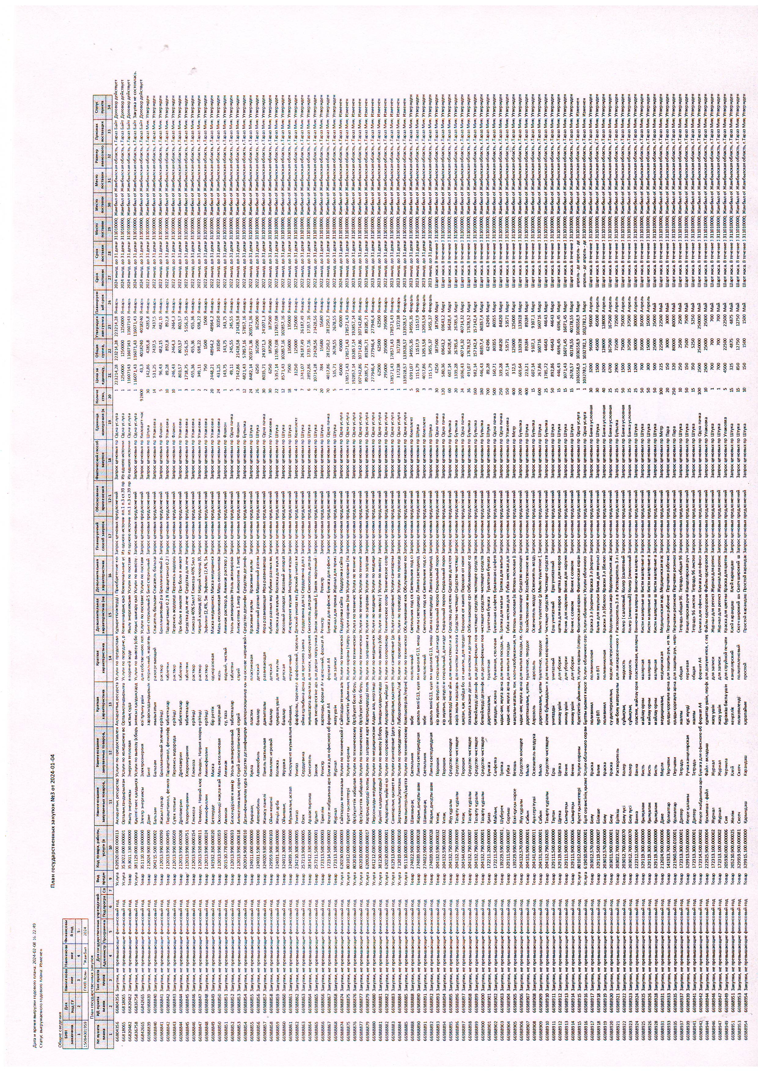 мемлекеттік Сатып алу жоспары 2024 жылға » №43 "Еркеназ" бөбекжай-бақшасы