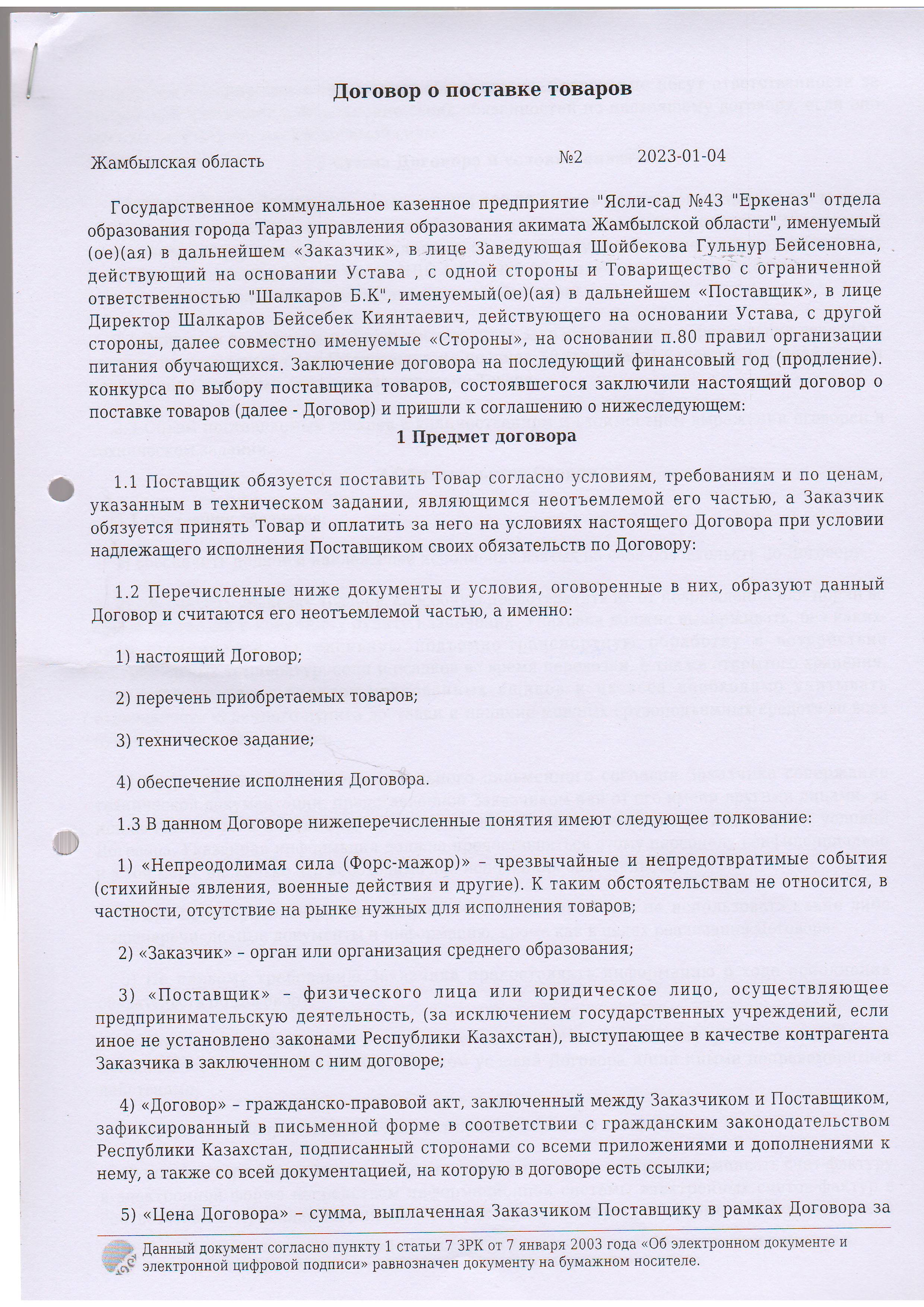 » » » Договор питание №1 ИП Шалкаров 2023
