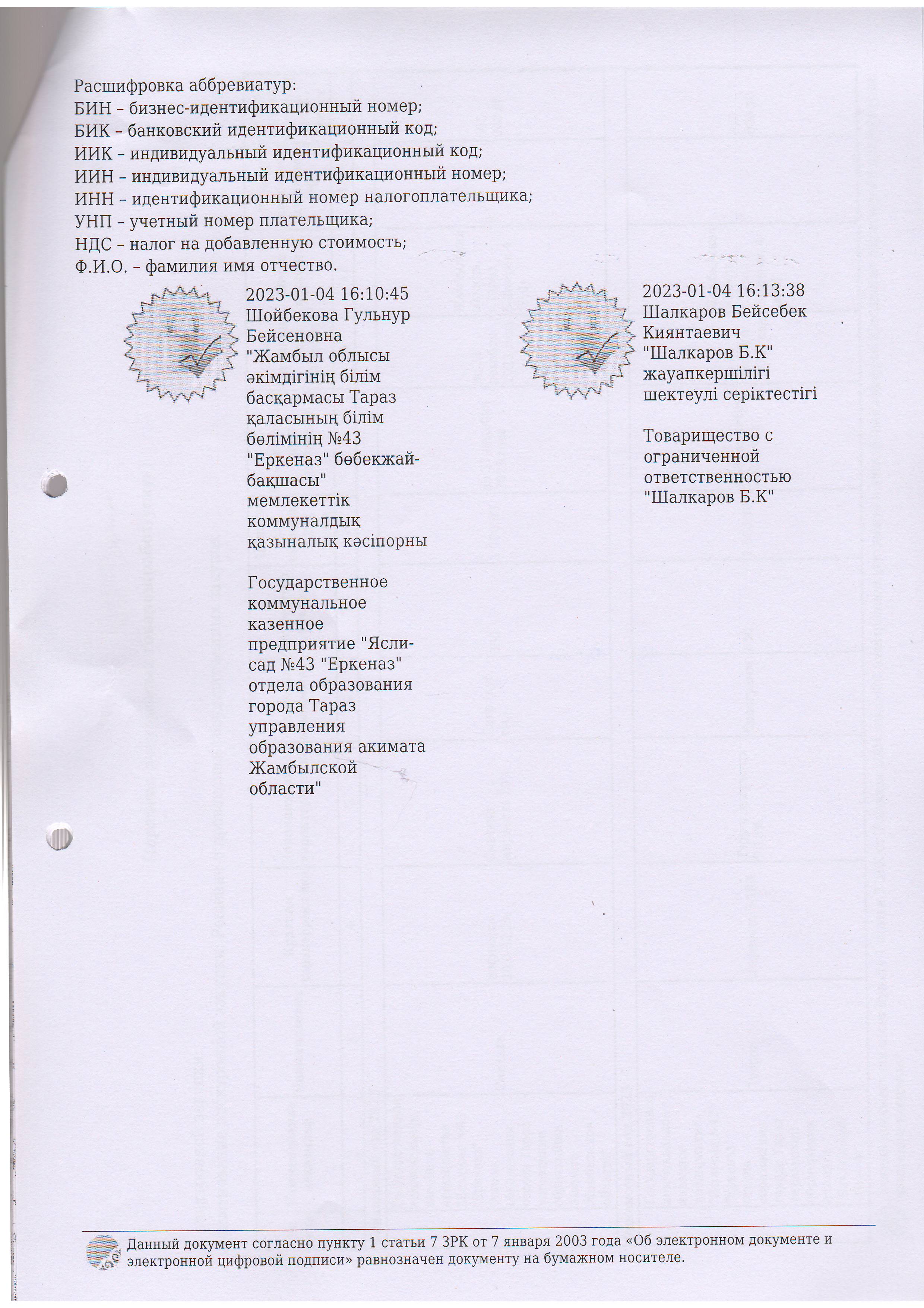 Договор питание №1 ИП Шалкаров 2023 » №43 "Еркеназ" бөбекжай-бақшасы