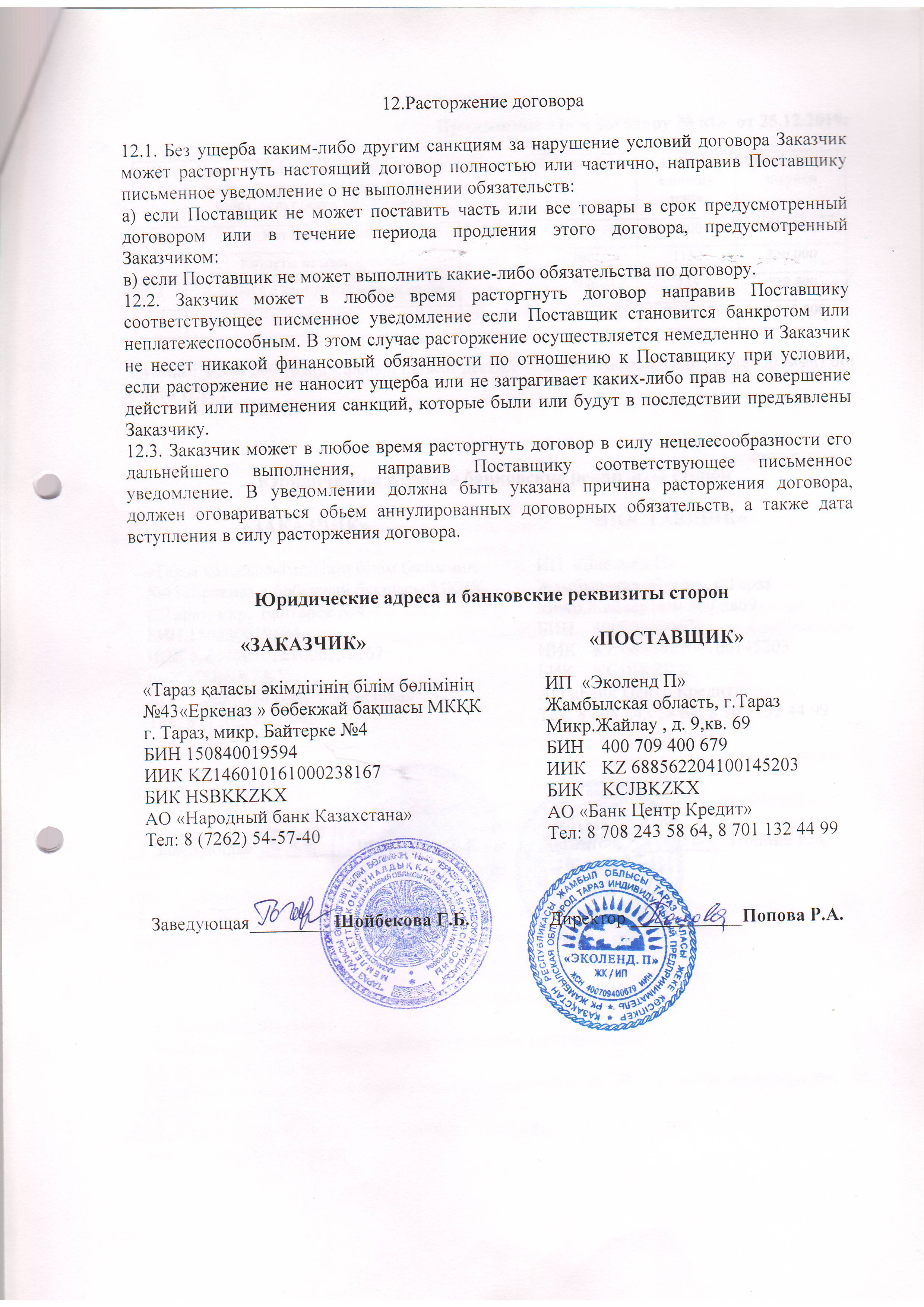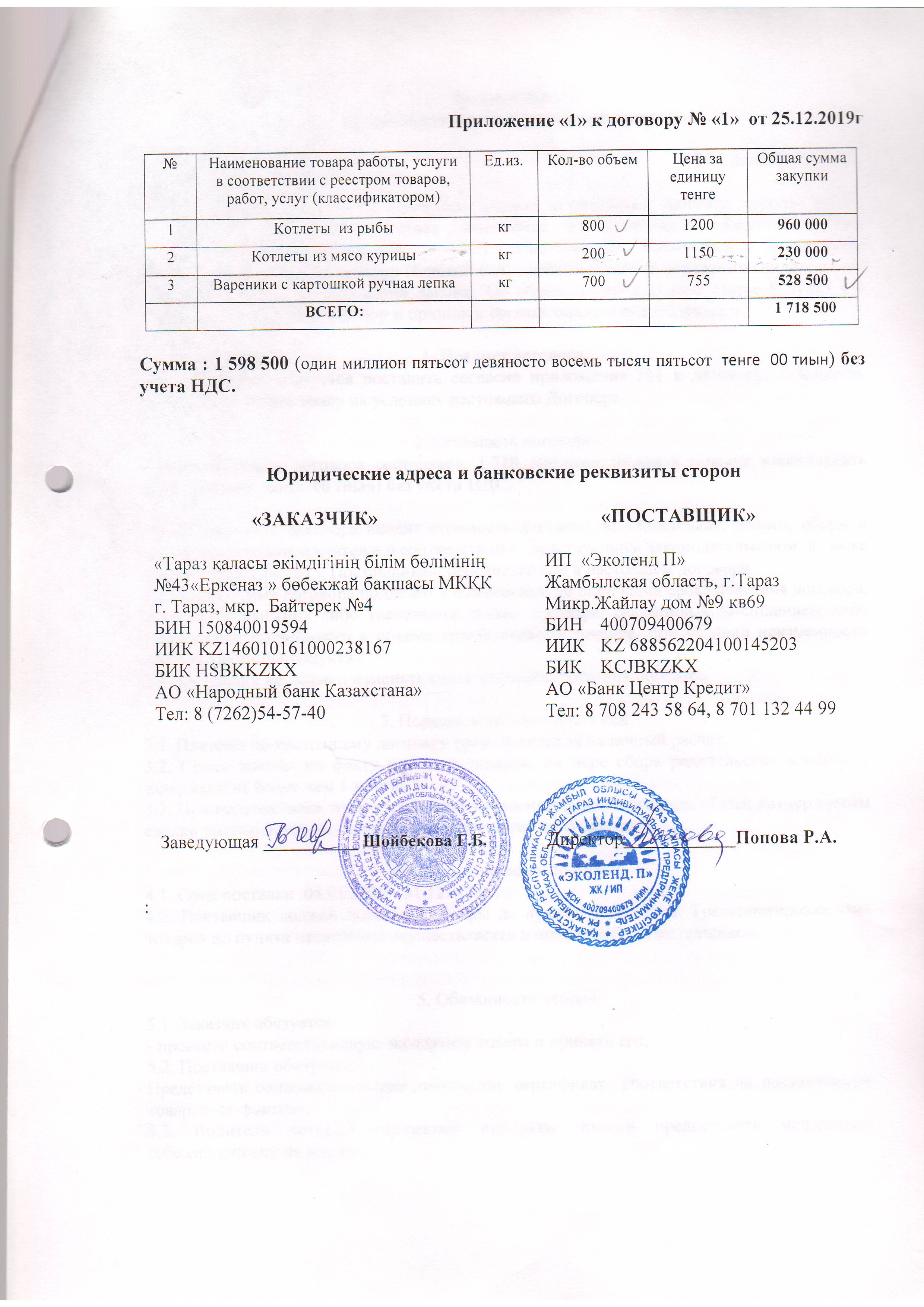 Договор питание №1 ИП Эколенд 2020 » №43 "Еркеназ" бөбекжай-бақшасы