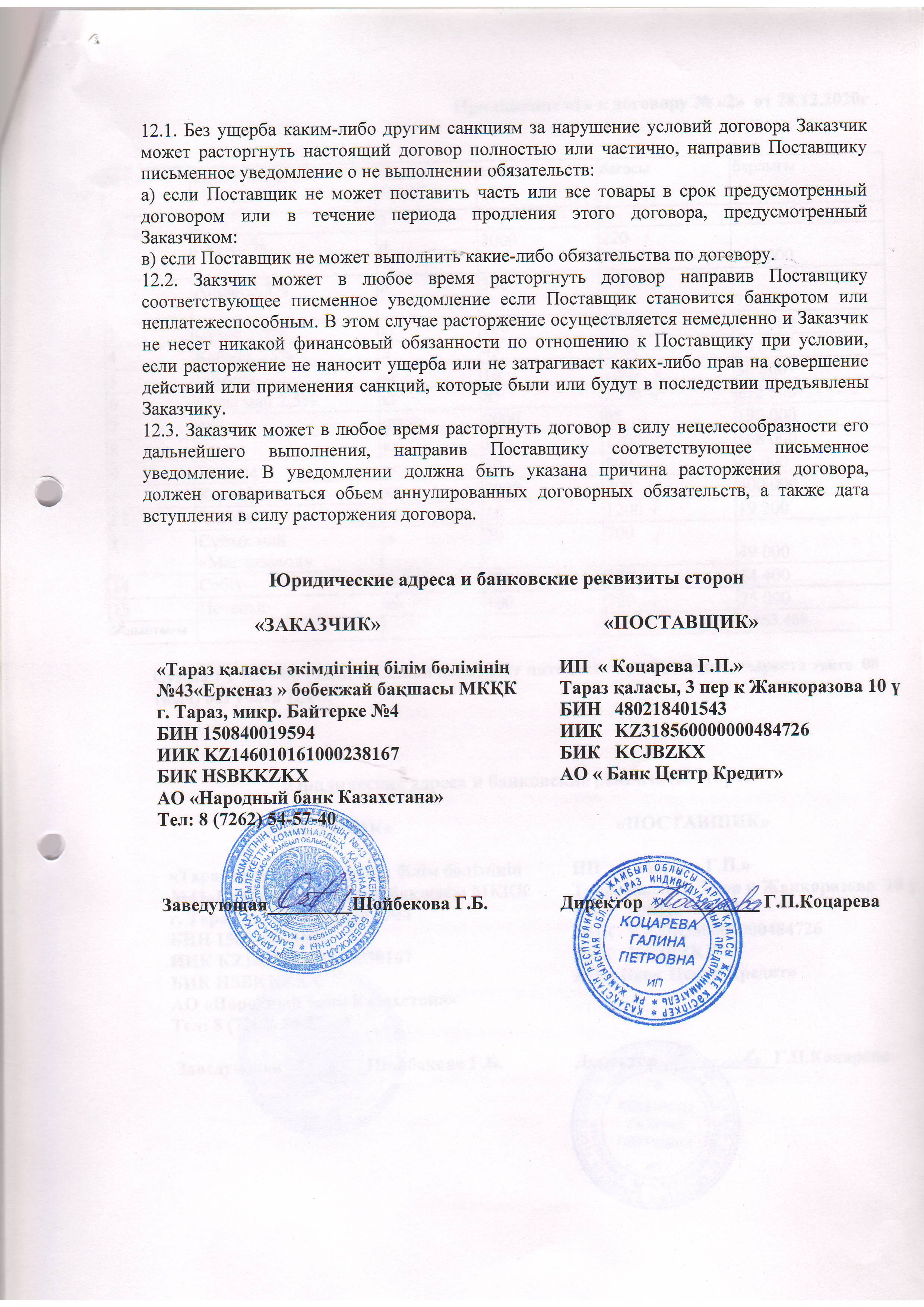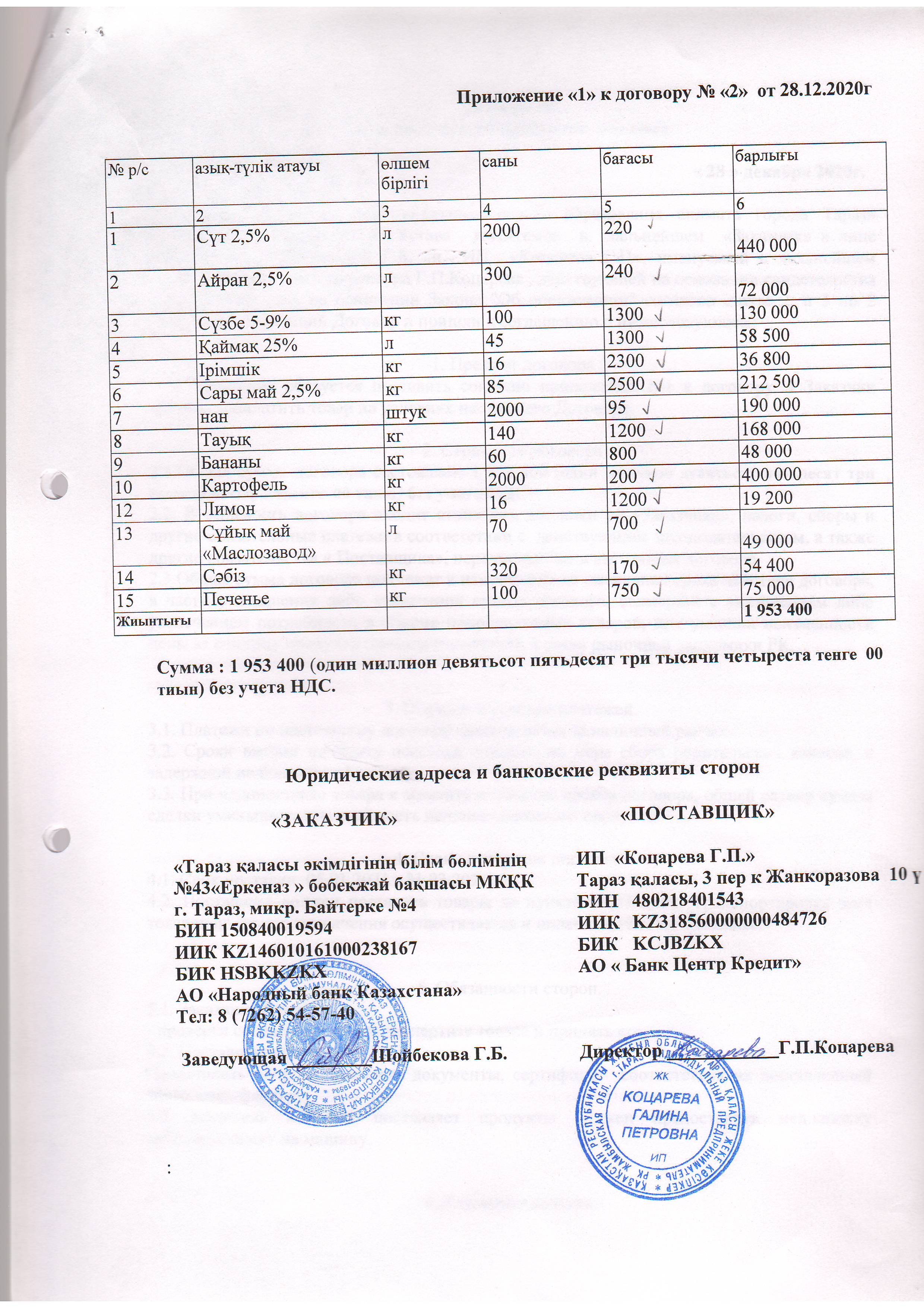 Договор питание №2 ИП Коцарева 2021 » №43 "Еркеназ" бөбекжай-бақшасы