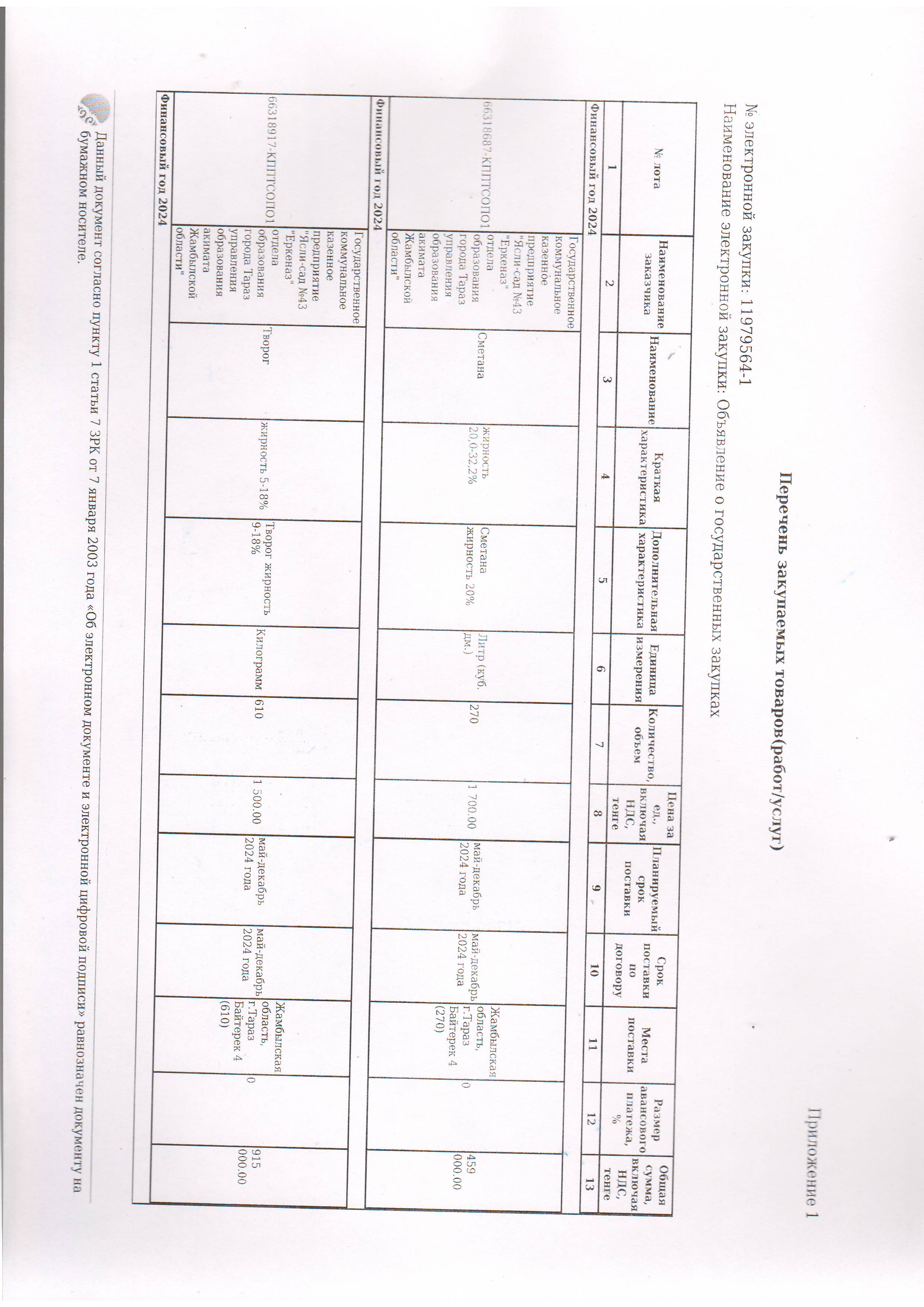 Договор питание №45 ТОО Шалкаров Б.К. 2024 » №43 "Еркеназ" бөбекжай-бақшасы