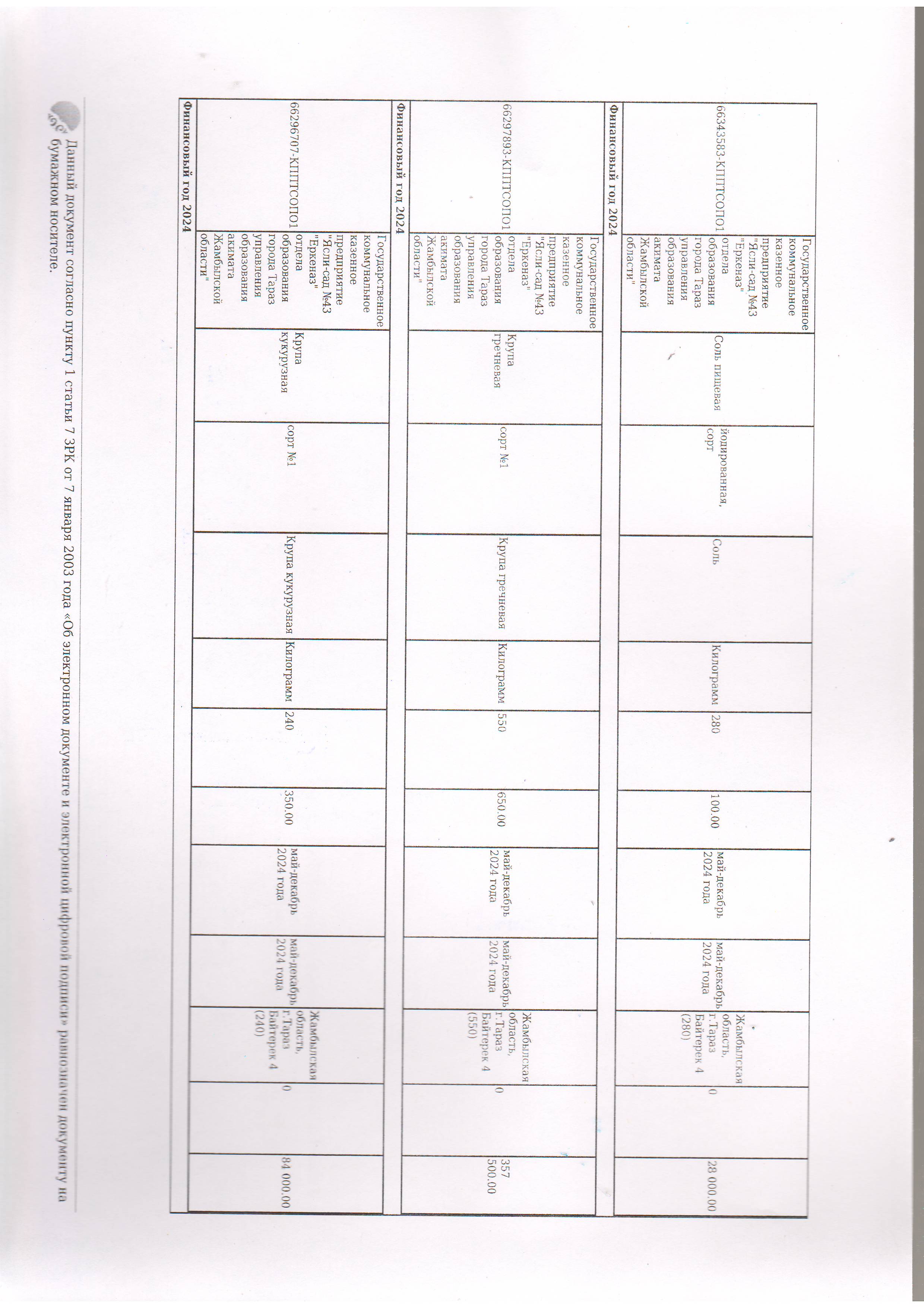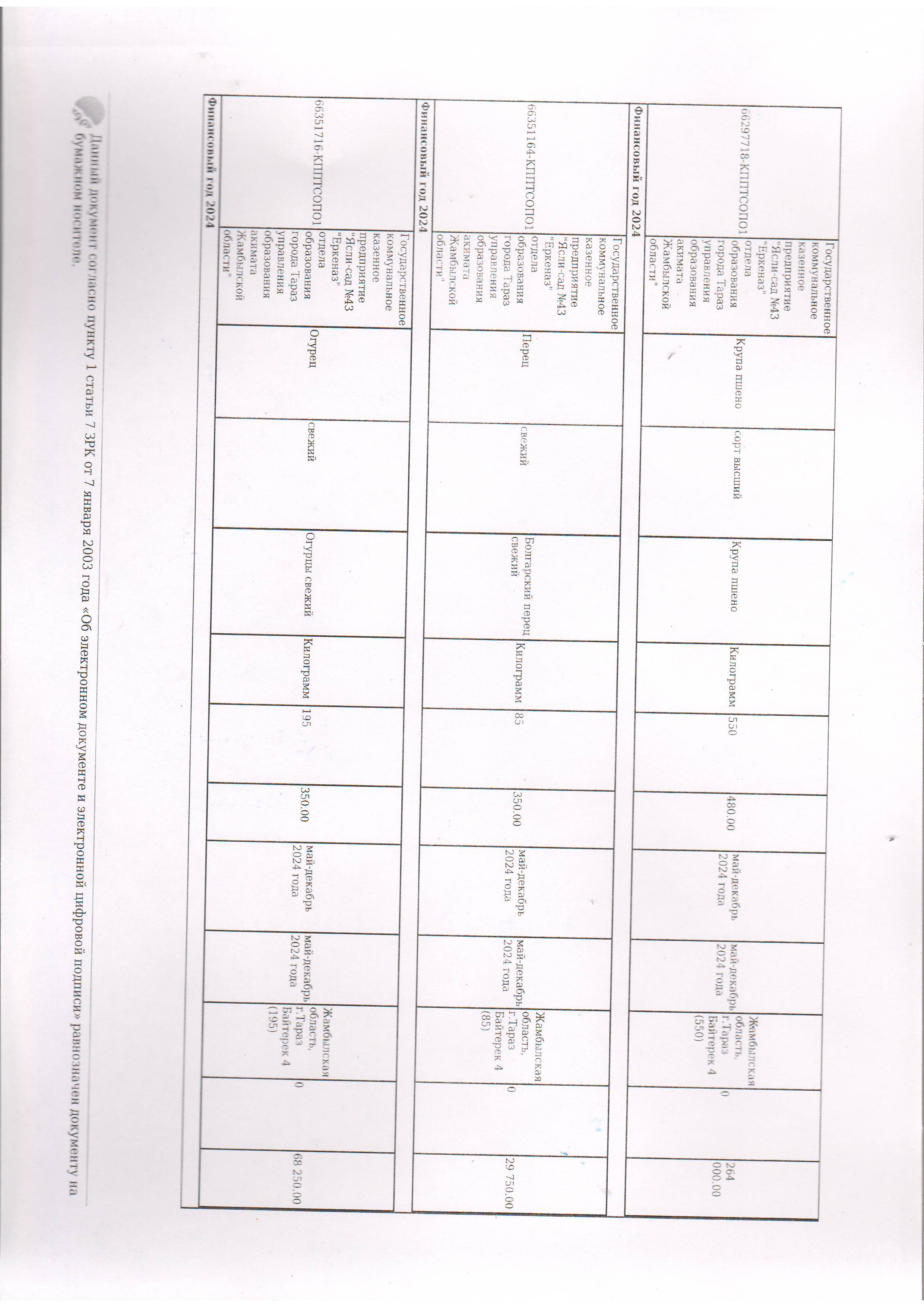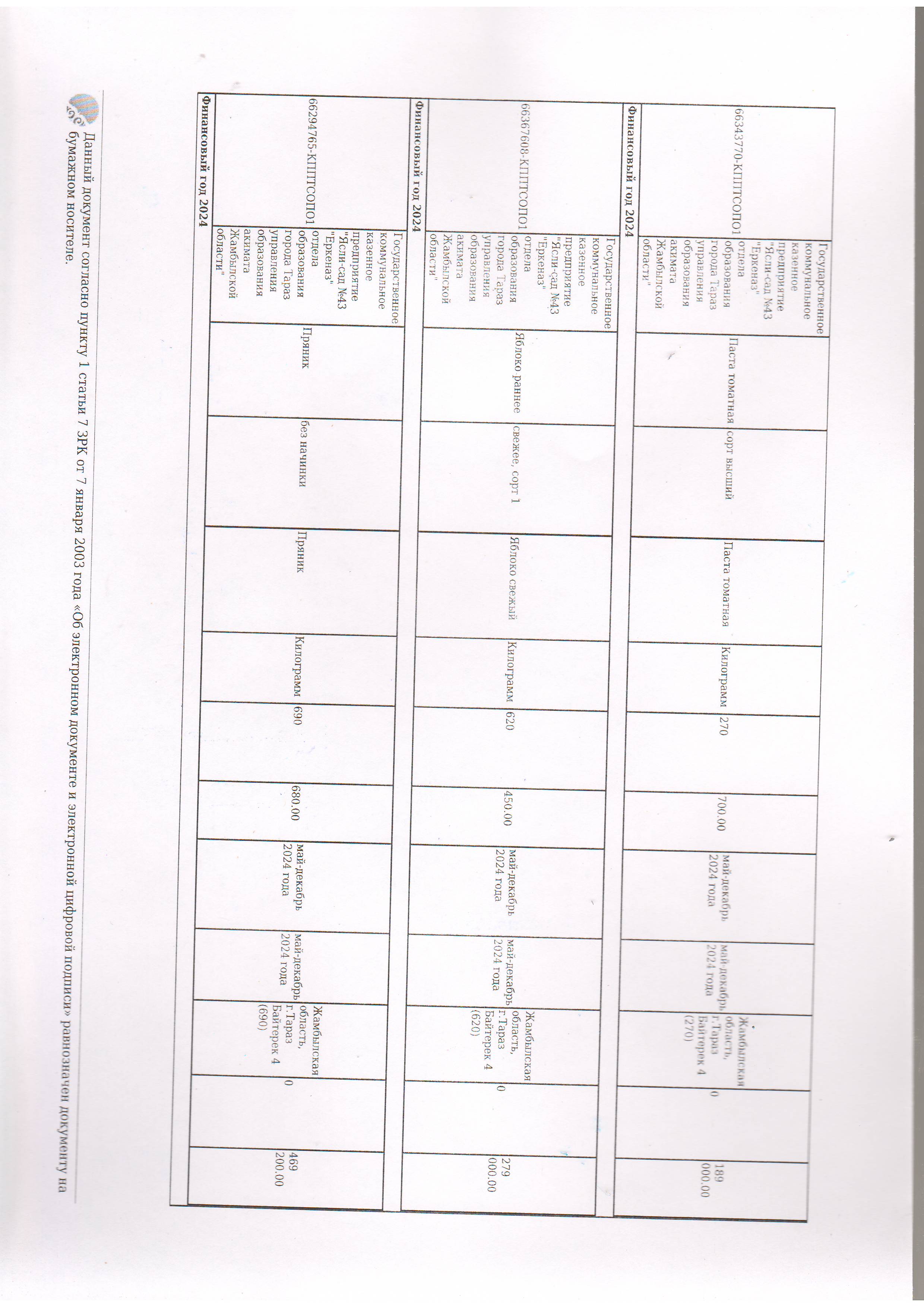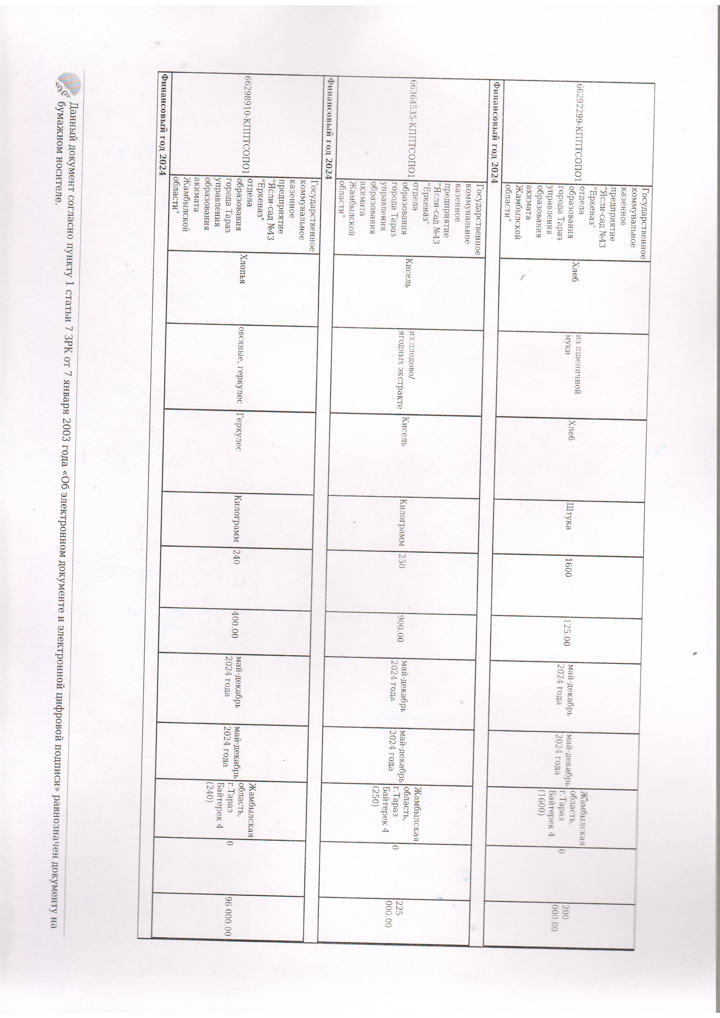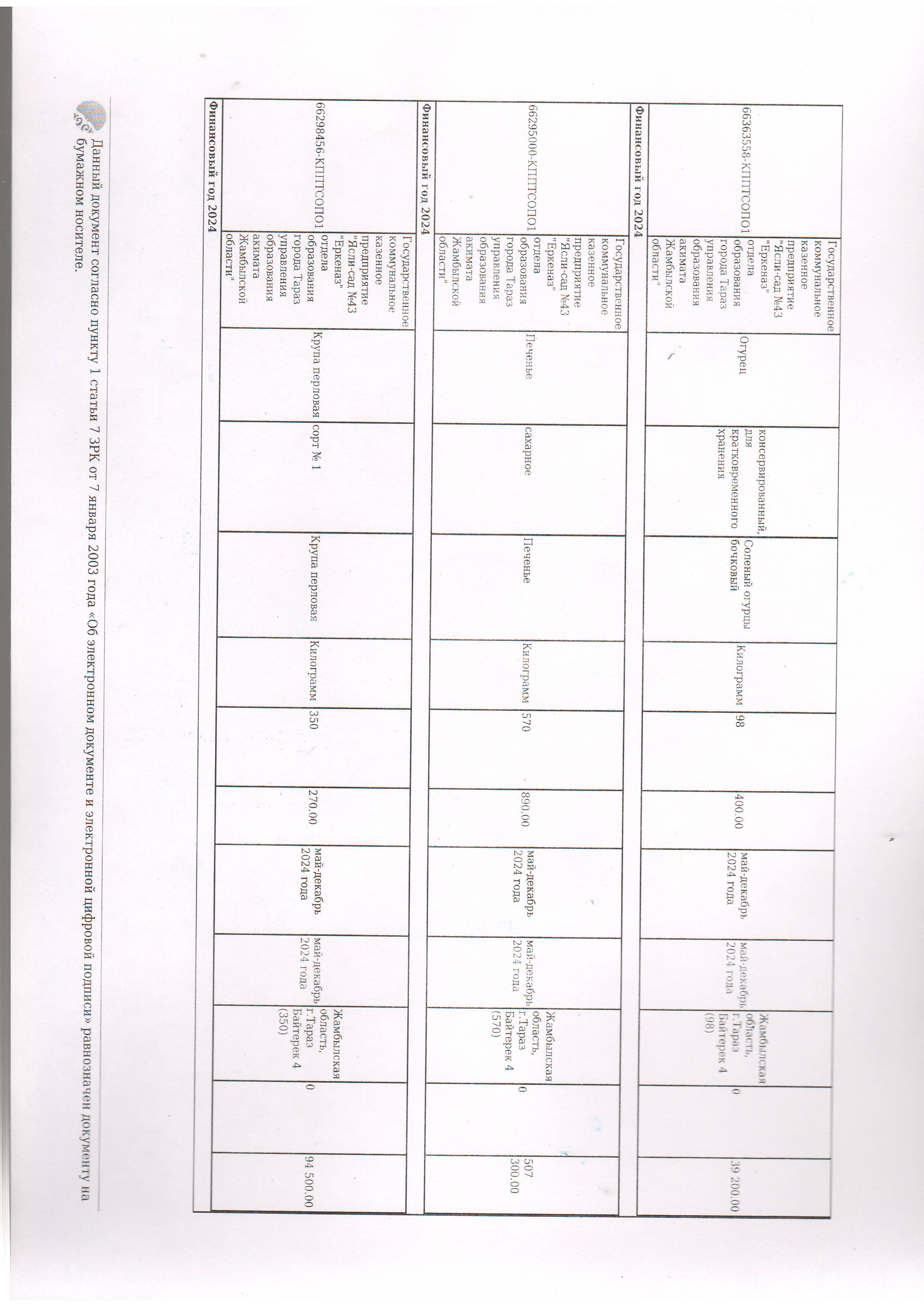 Договор питание №44 ИП Лесняк О.В. 2024 » №43 "Еркеназ" бөбекжай-бақшасы