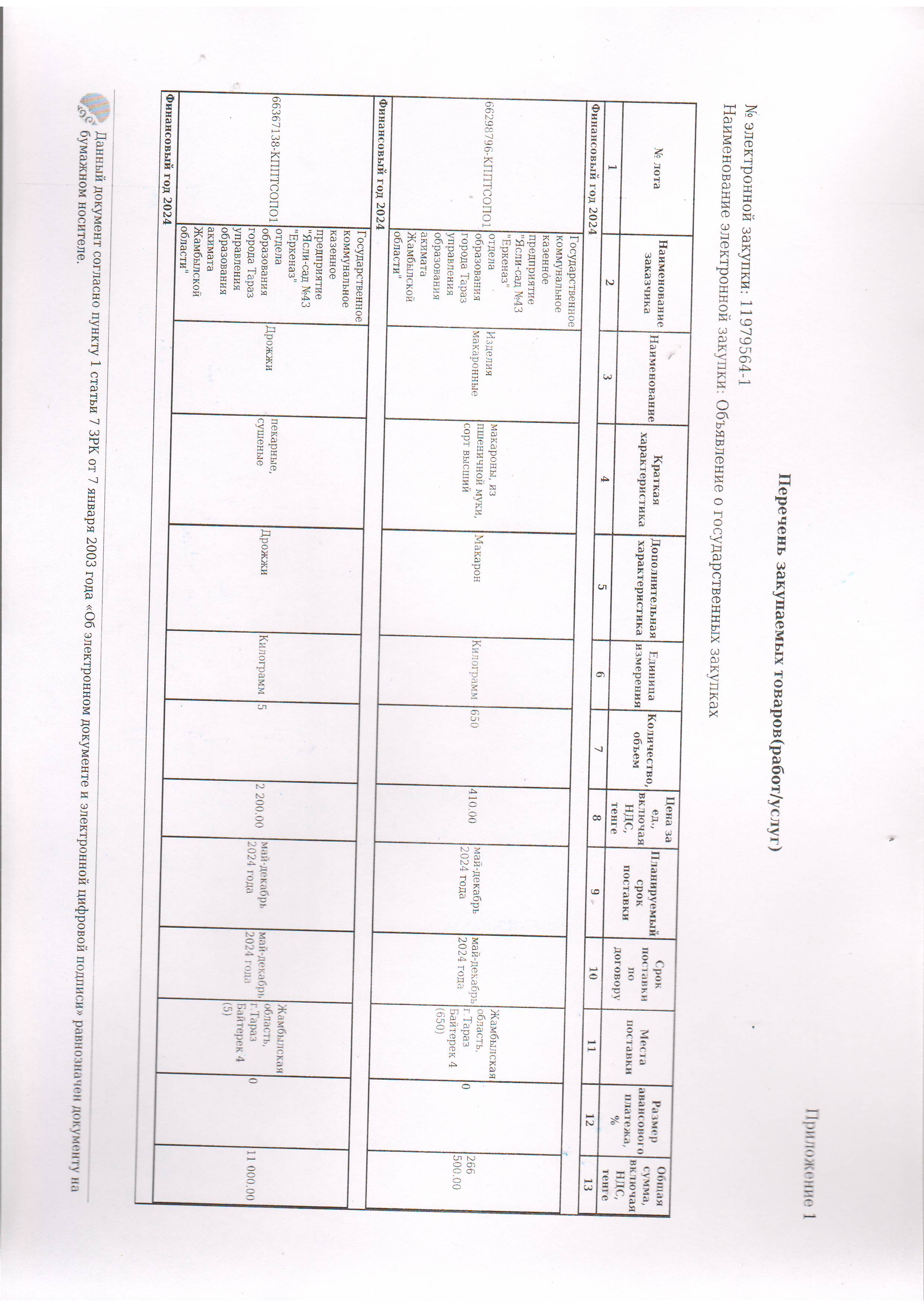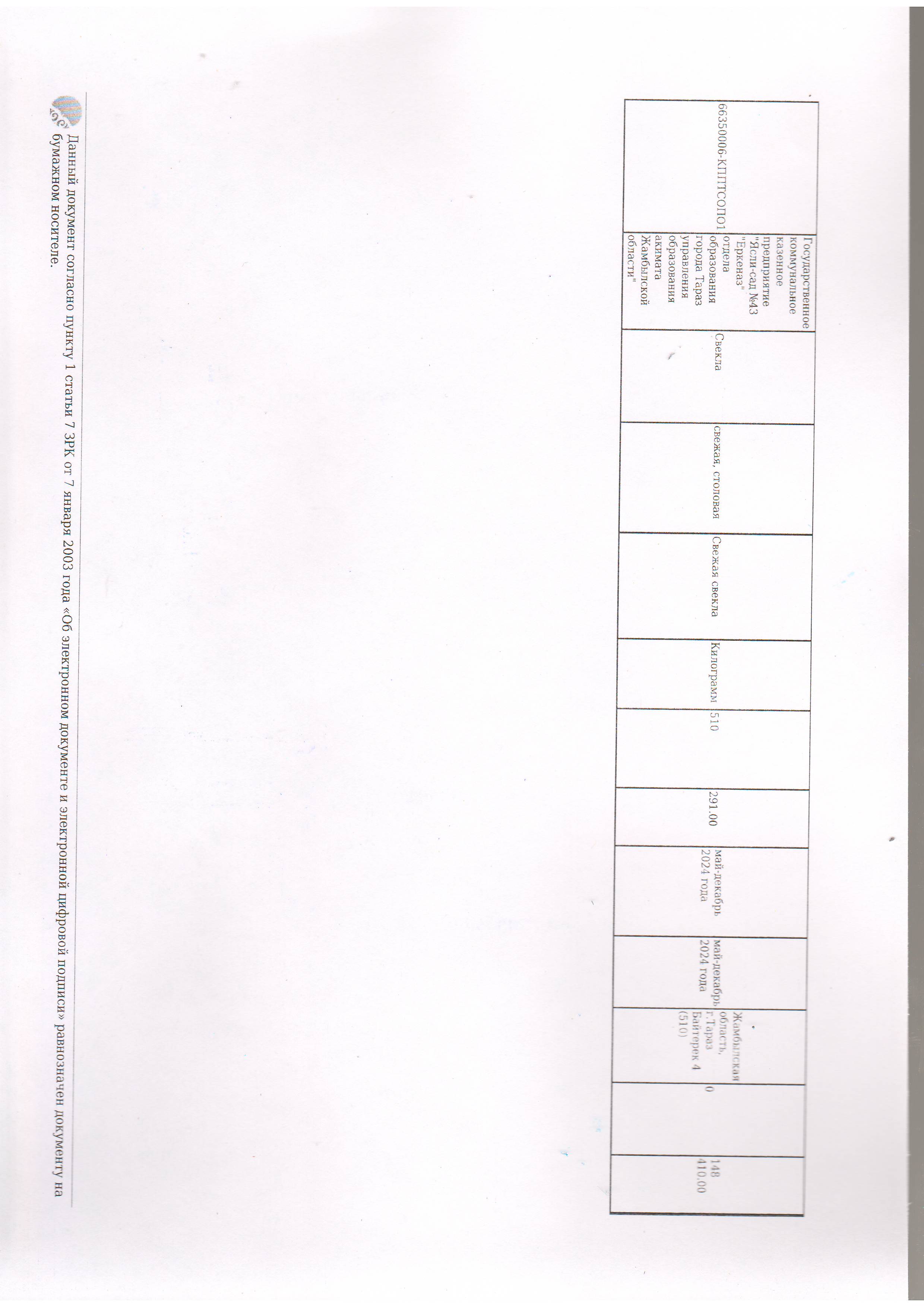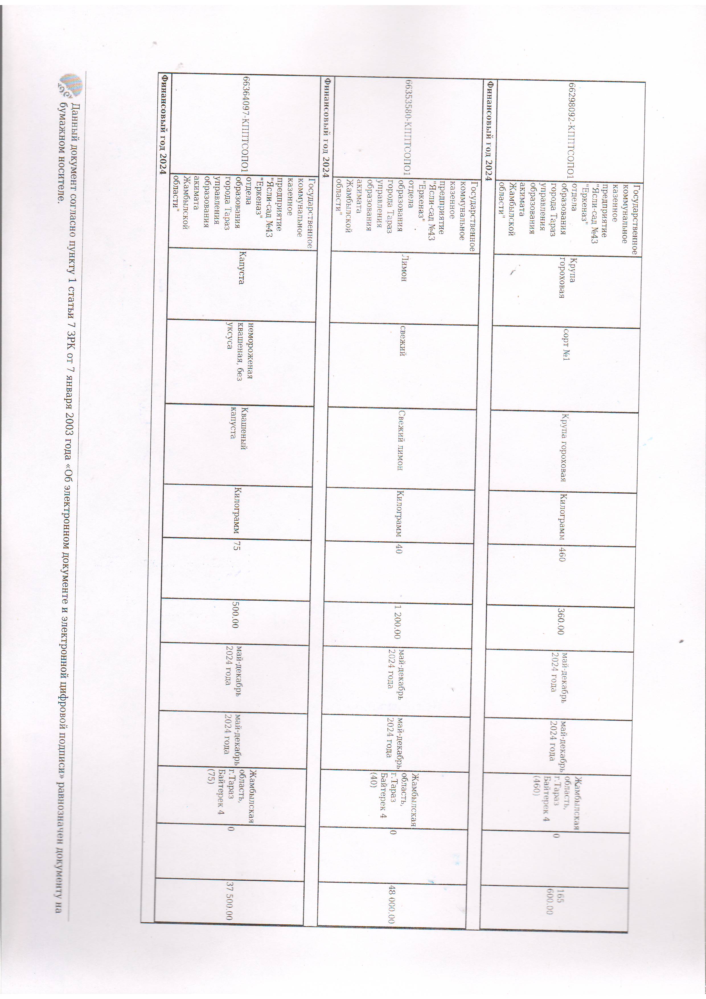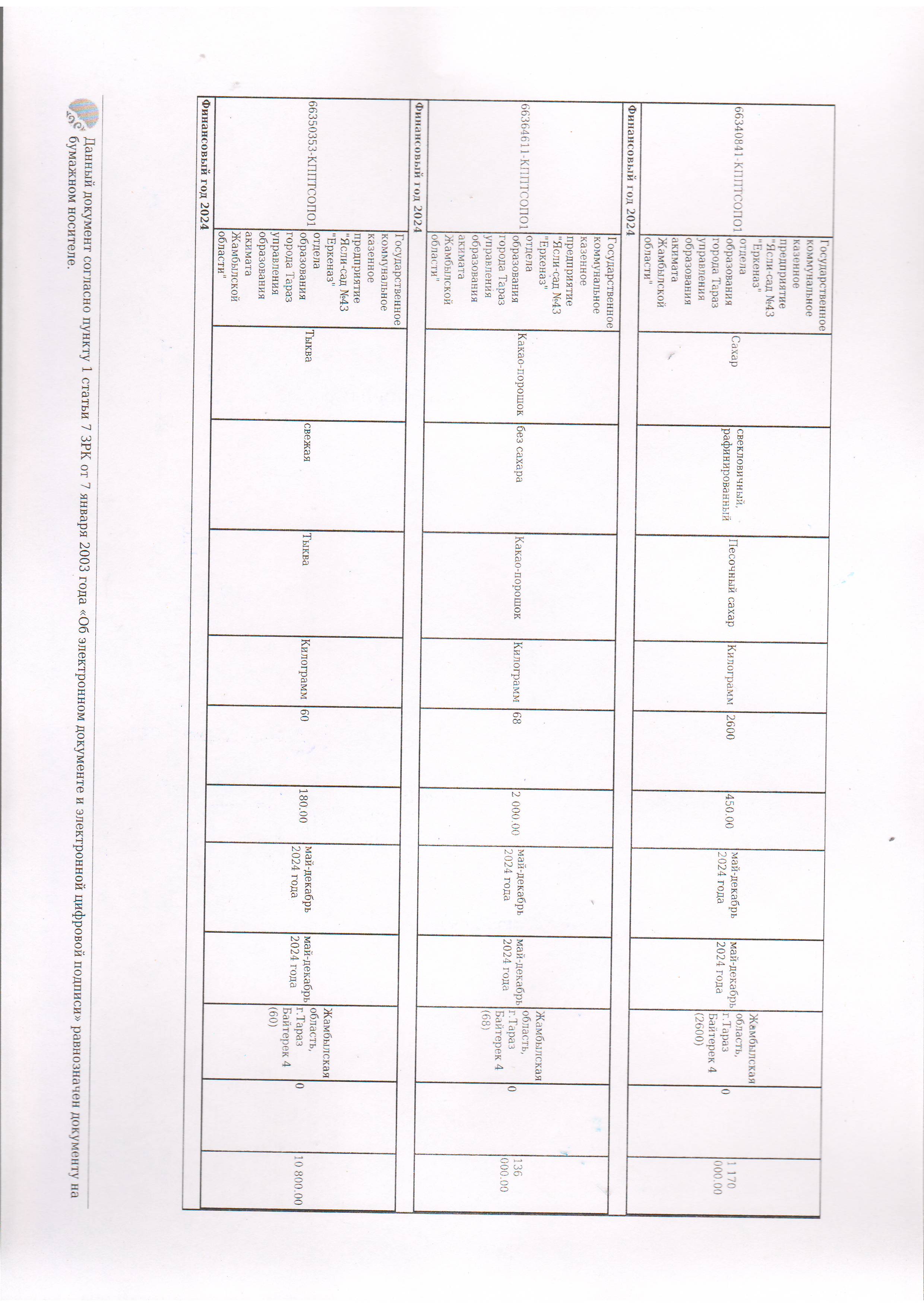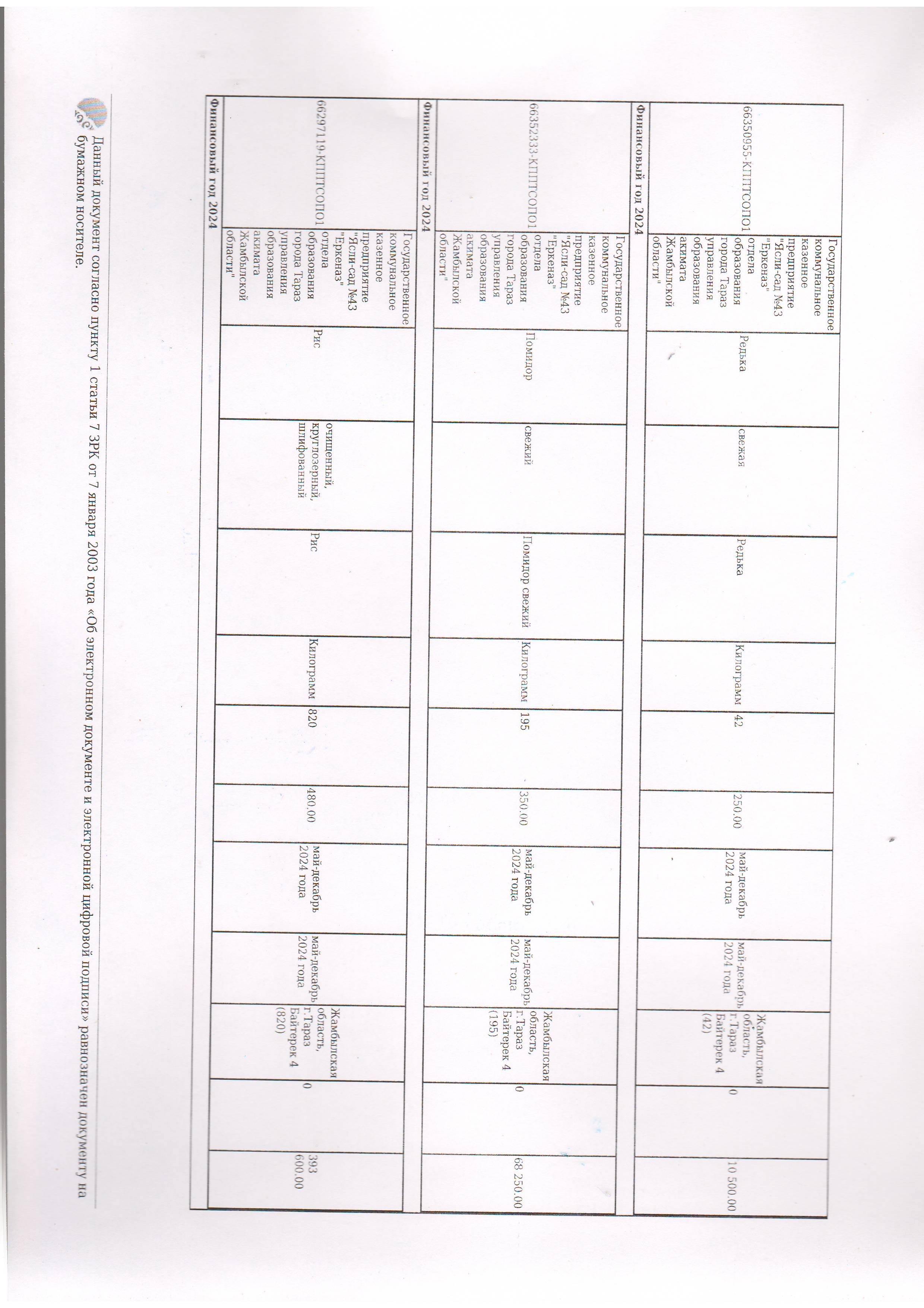 Договор питание №44 ИП Лесняк О.В. 2024 » №43 "Еркеназ" бөбекжай-бақшасы