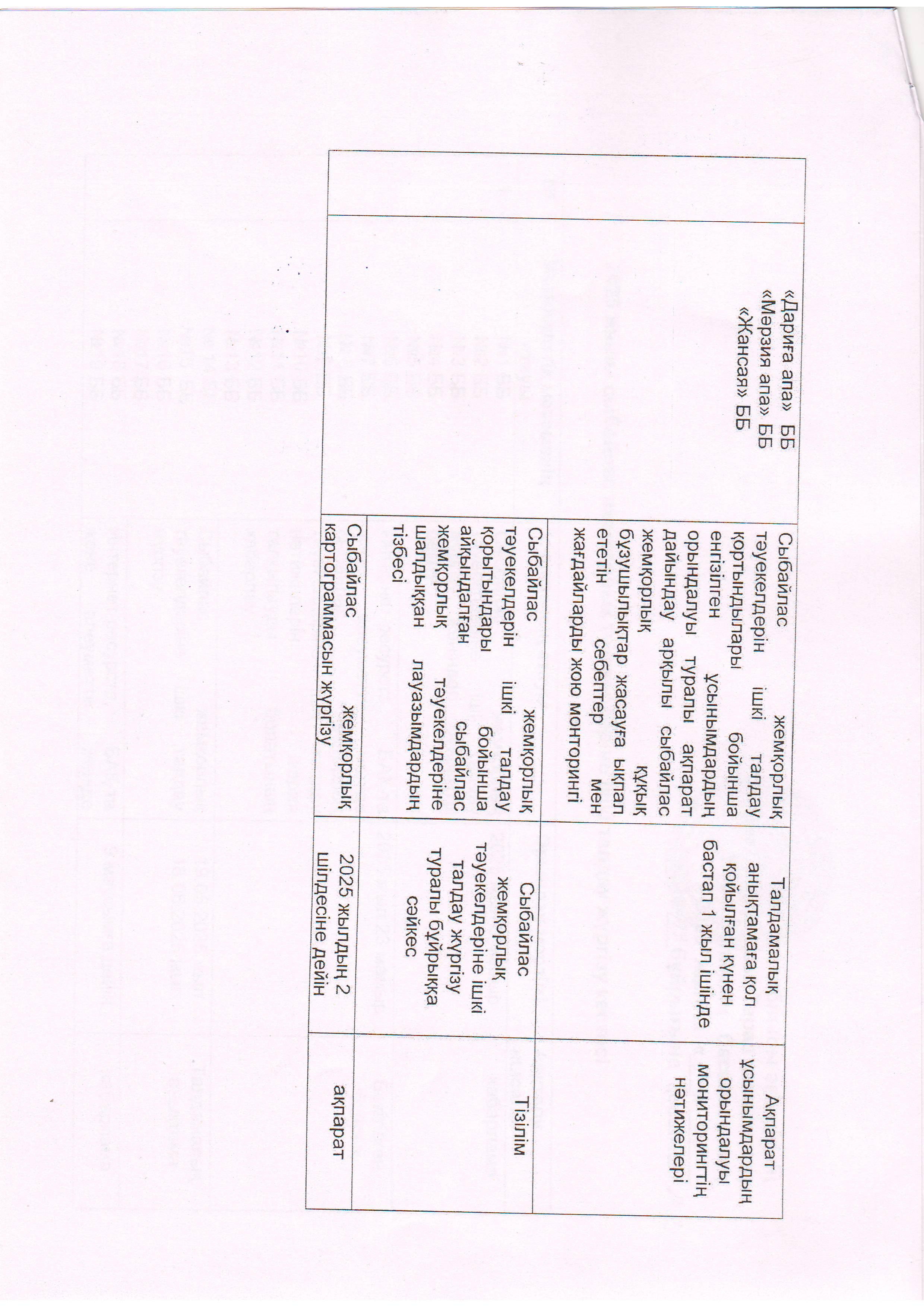 2025ж Сыбайластық жемқорлық тәуекелдеріне ішкі талдау жүргізу кестесі » №43 "Еркеназ" бөбекжай-бақшасы