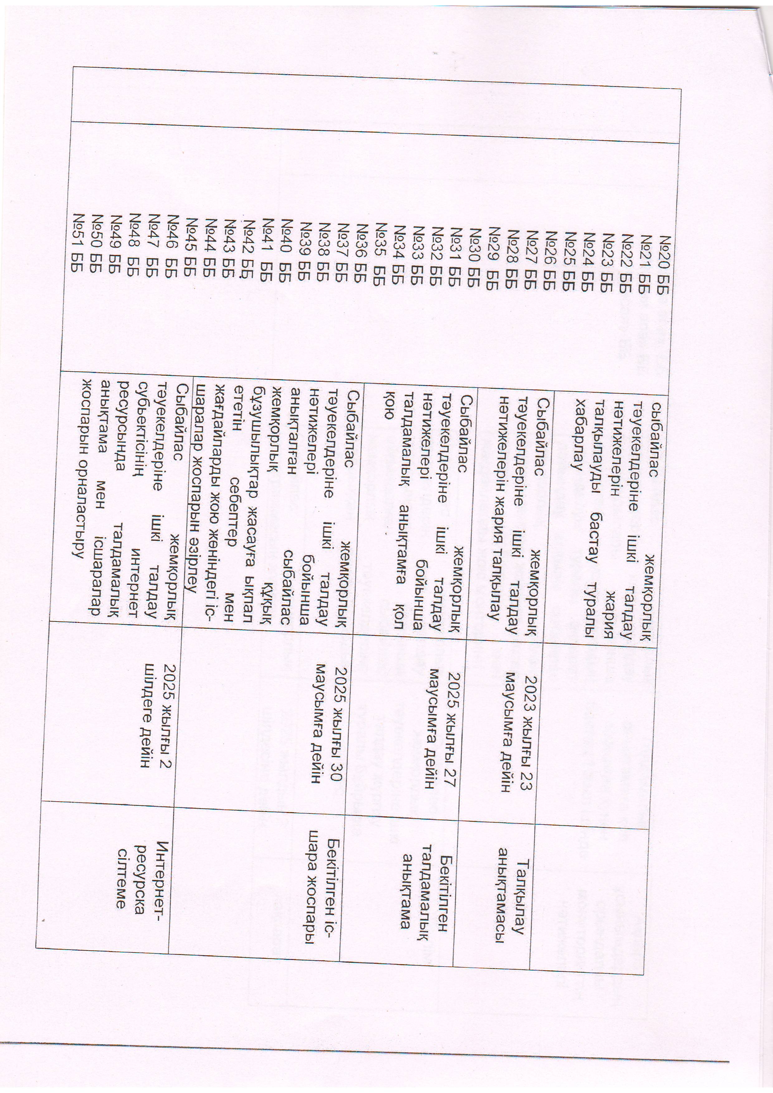 2025ж Сыбайластық жемқорлық тәуекелдеріне ішкі талдау жүргізу кестесі